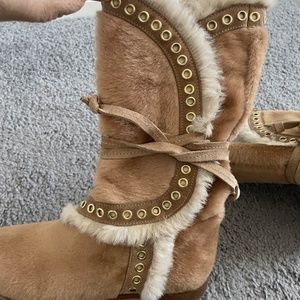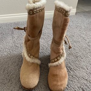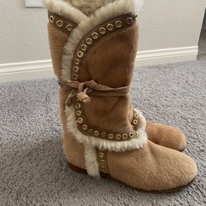 JIMMY CHOO Ponyhair Fur/ Fur lined Lace Up Boots Size 7 1/2