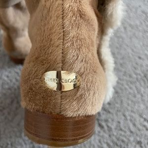Step out in style with these Jimmy Choo lace-up boots featuring a fur trim and shearling style that exudes elegance.