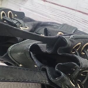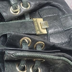 Green Leather with water snake accents make this bag unique.