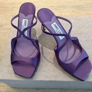 Stunning JIMMY CHOO ANISE sandal in Wisteria satin.
