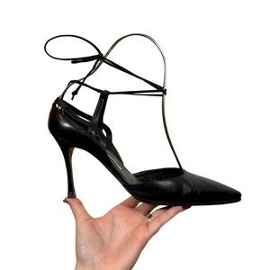 JIMMY CHOO Satin Strap Heels 120mm Champagne Toe Strap Back Strap Size 41