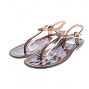 The product is a pair of Jimmy Choo thong sandals in size 9, featuring a leopard print pattern in brown color. The sandals have a flat heel under 1 inch and an adjustable buckle strap closure. They are designed specifically for women and are perfect for the spring and summer seasons. A stylish and trendy addition to any wardrobe, these sandals offer both fashion and comfort for the modern woman. Material is rubber