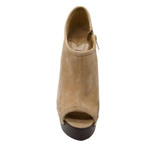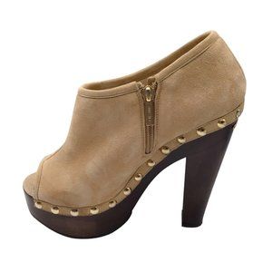 JIMMY CHOO URGE BEIGE / GOLD STUDDED SUEDE LEATHER PEEP TOE CLOG ANKLE BOOTS / B