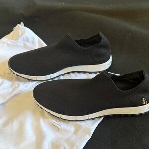 Purchased at the Jimmy Choo store in Vienna. Worn only once. Brand new condition with original drawstring storage bags.