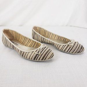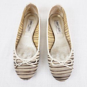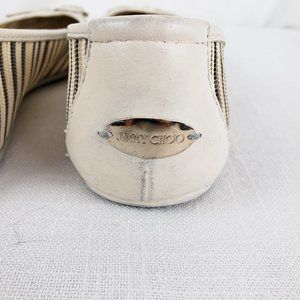 Cream and Silver Metallic Striped Walsh Style flats by JIMMY CHOO.