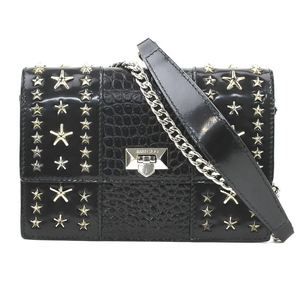 JIMMY CHOO shoulder bag in embossed leather, metal, black and silver for women r10455k - 17.5cm x 5cm / 6.88'' x 1.96''