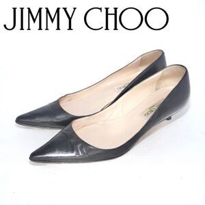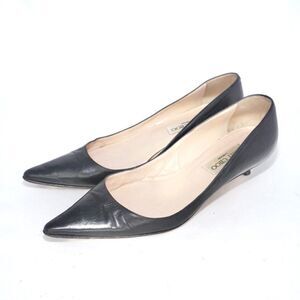 JIMMY CHOO Vintage Black Leather Pointed Toe Pumps, Size 38
