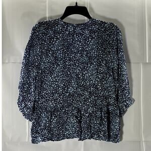 JIMMY KEY Women's Blue Floral V-Neck Surplice Ruffle 3/4 Sleeve Top SZ L