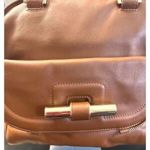 JIMMY CHOO Justine Handbag/Tote Chestnut/Tan Leather Double Strap Shoulder Bag