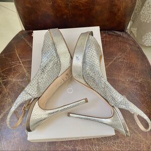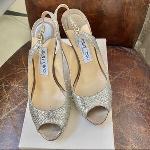 JIMMY CHOO glitter slingback open pumps 7.5