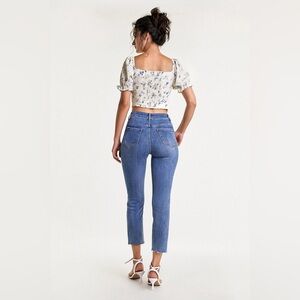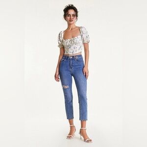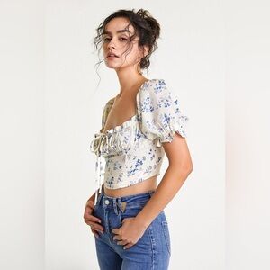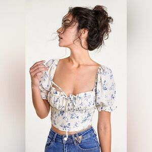 J.ING Ivory Floral Print Square Neck Cropped Blouse Top