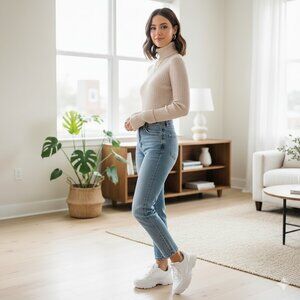 J.ING Jing Beige Turtleneck Knit Sweater Top One Size NWT