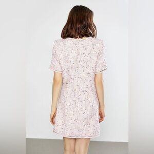 J.ING Librada Tweed Pink Button Short Sleeve Mini Dress