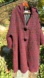 This gorgeous jacket is super warm with a large hood. Two big button closure, wide arms.. says size 2 but fits me and I’m a medium large.