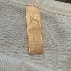 WHITE LONG SLEEVE SLANT SHOULDER TOP SIZE L. Sleeves 19”. Pit to pit 23”. Length 26.5”