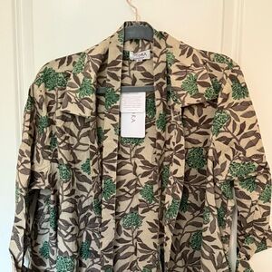 Grey and Green Succulent Print, but in some lights I think it can look a bit more tan. Comes with a tie for the waist.