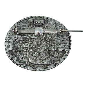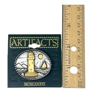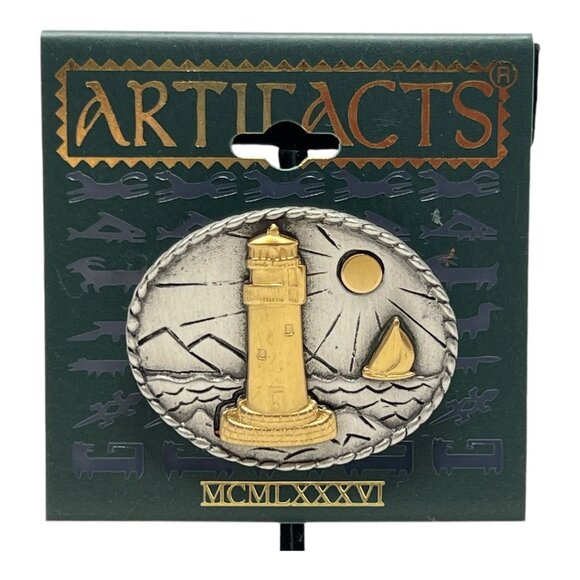 JJ Artifacts Lighthouse Sailboat Scene Brooch Pin 1986 Silver Gold Tone Vintage