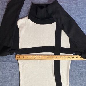 J.J. BASICS Medium Black White Colorblock Mock Neck Long Sleeve Top Minimalist M