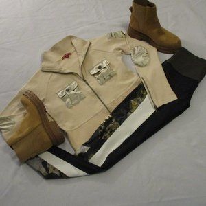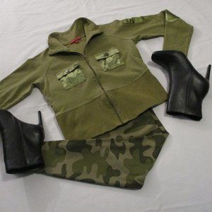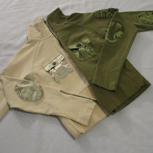 π J.J BASICS VINTAGE GREEN AND BEIGE (2) FULL-ZIP CROP TOPS β SIZE L π