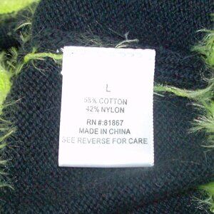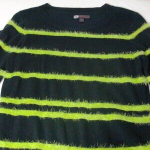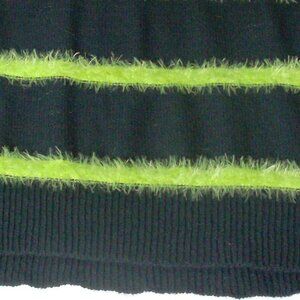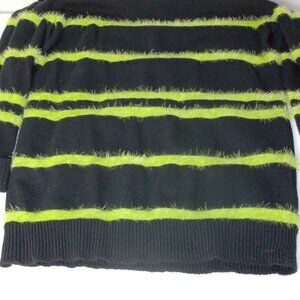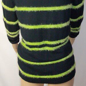 J.J. Basics Black sweater with Lime Green Fur/Fuzzy Stripes Size L