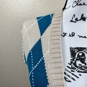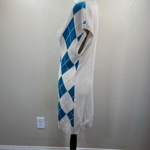 JJ Basics Light Brown long knit sweater/ dress blue checkers size XL academia