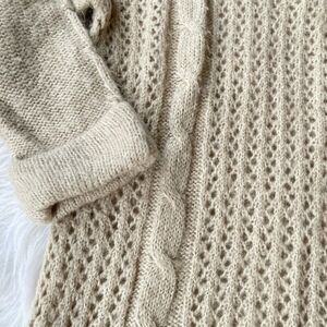 JJ Basics Sweater Sz L Cuffed Sleeves Open Knit Oatmeal Color Nordstrom Casual