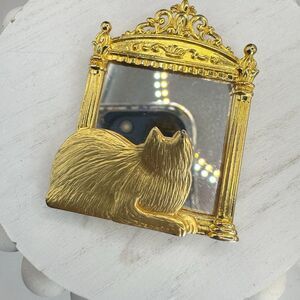 JJ Cat Looking In Mirror Brooch Pin Kitschy Jonette Jewelry