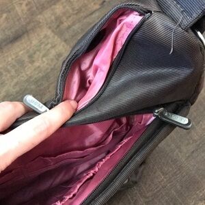 Good used condition- small signs of wear as shown. Lots of pockets for storage! Adjustable strap.