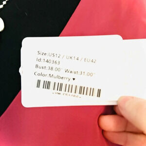 A hidden side zipper ensures a smooth, flattering fit. While labeled a size 12, it runs slightly smaller—please check measurements for best fit.