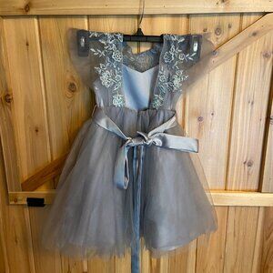 JJ House Puffy Tulle Flower Girl Dress Dusty Blue Toddler 2