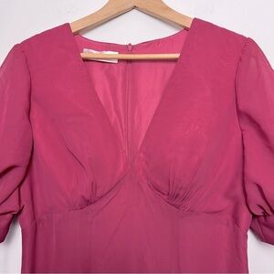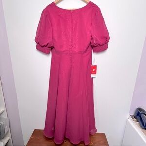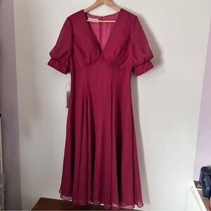 JJ House V-Neck Tea-Length Chiffon Evening Dress with Pleats Mulberry NEW US12