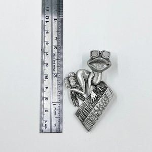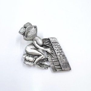 JJ Jonette - 3D Jamming Frog on Keyboard Antiqued Silver Tone Brooch Pin