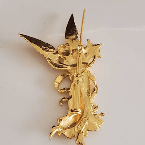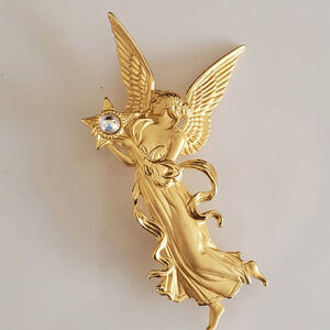 JJ Jonette Gold Tone Angel Brooch with Star and Rhinestone Accent Matte Finish