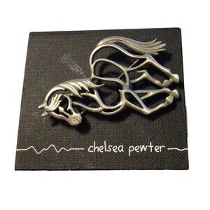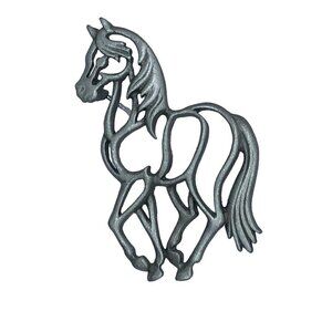 JJ Jonette Jewelry Galloping Horse Cut Out Pewter Signed 2 Inch Tall Vintage