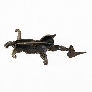 JJ Jonette Jewerly Company Vintage Cat Catching Butterfly Bronze Tone Brooch