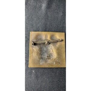 Beautiful vintage 1988 designer square pewter lion on a brass or gold Pantene tone, signed by JJ. Pre-loved, normal wear in good condition