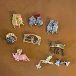 JJ Jonette vintage 80-90s - Pigs, cowboy, stork, dog bone Brooch Pin