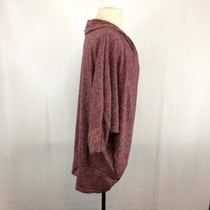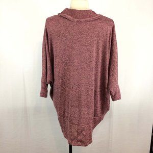 Pink with a bit of gray soft open front cardigan with batwing 3/4 sleeves. Fabric is like a lightweight sweatshirt material. Unlined.