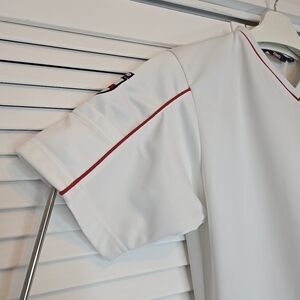 Level up your sporty streetwear with this vintage-inspired JSport England Soccer Jersey in a crisp white hue with bold red contrast piping. Featuring the St. George’s Cross shield patch at chest and sleeve, and a clean v-neckline, this shirt blends heritage athletic style with modern minimalism. Crafted from 100% polyester, it's lightweight and breathable—ideal for casual wear, match days, or styled up for a retro Y2K moment.