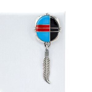 JJ Signed Sterling Silver 925 Single Earring | Southwest Turquoise Coral Onyx