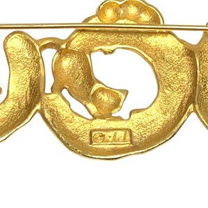 Add a touch of whimsy to your outfit with this vintage JJ brooch, featuring three mischievous cats playing on crescent moons. Approximately 4" in length. It's a purr-fect conversation starter that blends timeless elegance with a playful charm. Ideal for cat lovers or anyone with a penchant for celestial designs.
