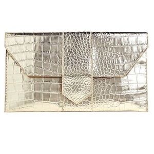 JJ Winters Nikki Metallic Gold Reptile Crocodile Print Clutch Bag New With Tags