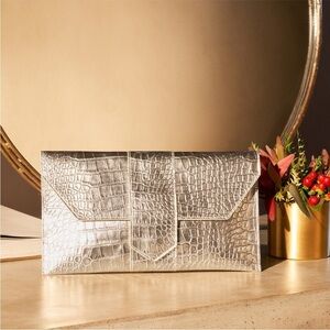 JJ Winters Platinum Metallic Faux-Croc Clutch Collaboration with Rachel Zoe for Curateur