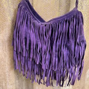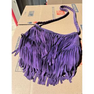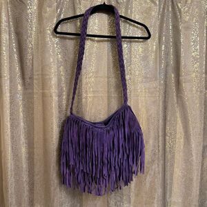 JJ Winters Y2K Purple Suede Leather Fringe Boho Western Crossbody Bag Used