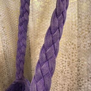 VERY USED condition, smoke and pet free home. This is such a gorgeous bag but has def been used and loved. Please see all photos, as it has fading, a couple areas where the fringe has ripped off and overall wear. If this was to be leather treated and conditioned it would be great to still use and last a long time. This was the IT girl bag of the 2000s, as seen on Paris Hilton etc in the example photos. Royal purple color, see pics indoors and outdoors. Retailed for $400.