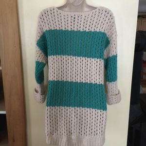 J.J.BASICS reen tan crochet knit roll cuff sweater