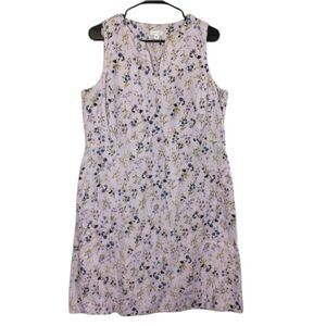 J.JILL 100% LINEN LAVENDER FLORAL KNEE LENGTH SLEEVELESS DRESS WITH POCKET SMALL