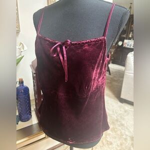 J.JILL 100% Rayon SHIMMERING BURGANDY VELOUR PARTY BABYDOLL VTG CAMI TANK SZ M