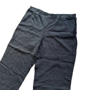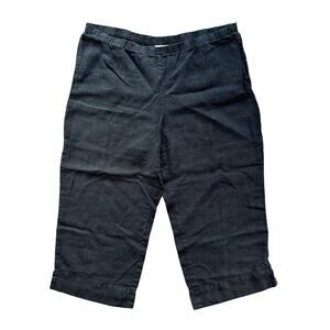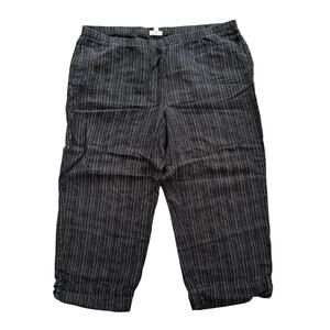 J.JILL 2 Pair 100% Linen Pull On Cropped Pants Black Striped & Black Solid SZ XL