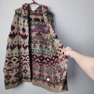J.JILL Aztec Lenox Hooded 2 pocket knit Cardigan Topper Sweater Jacket M